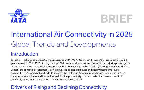 The report analyzes global international air connectivity trends in 2025, measured by IATA’s Air Connectivity Index.