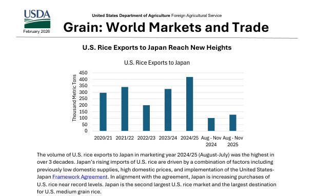 Этот отчет посвящен мировым рынкам зерна и торговле, с акцентом на экспорт риса из США в Японию.
