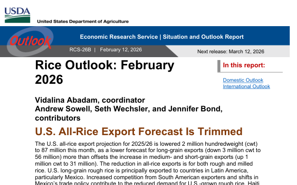 Этот отчет предоставляет прогноз по производству, поставкам, экспорту и импорту риса на маркетинговый год 2025/26.