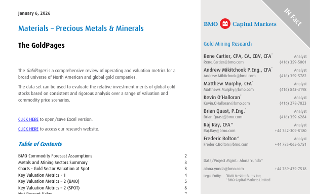The GoldPages представляет собой всесторонний обзор операционных и оценочных метрик для широкого круга североамериканских и глобальных золотодобывающих компаний.