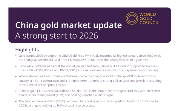 Отчет охватывает динамику и показатели рынка золота в Китае в начале 2026 года.