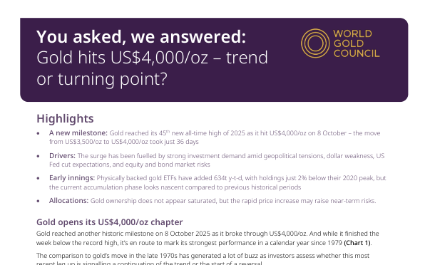 Документ анализирует недавний рост цен на золото, достигших отметки в 4000 долларов за унцию, и рассматривает, является ли это продолжением тренда или началом разворота.