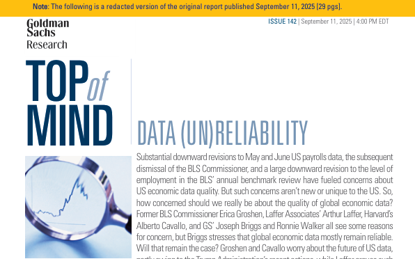 Основная тема отчета касается надежности экономических данных, особенно в контексте США, после значительных пересмотров данных по занятости и увольнения комиссара BLS.
